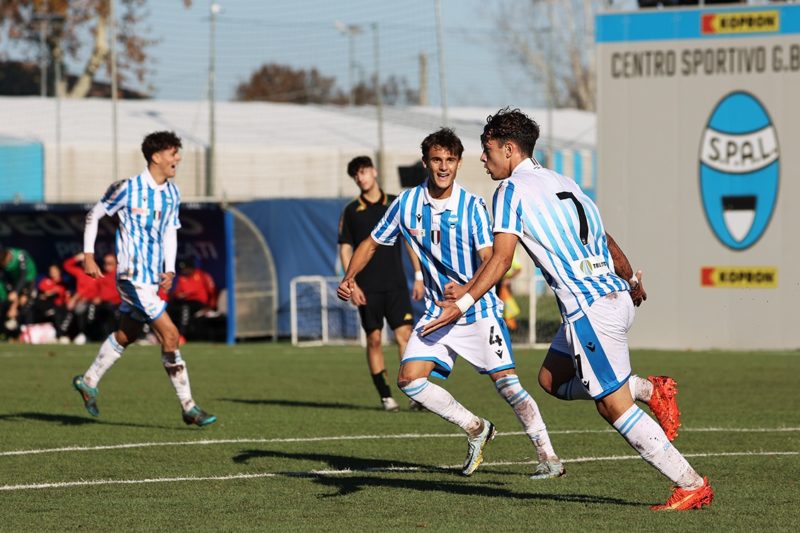 Sono quattro di fila per i ragazzi di Pedriali, che mantengono la prima posizione nel girone B del campionato Under 18. Il 3-1 al Parma conferma ancora una volta la facilità con la quale i biancazzurri sanno andare in gol: con il tris ai crociati il bilancio è di 40 in 15 partite. Nei primi 45’ la SPAL è protagonista indiscussa: controlla il gioco e amministra bene il possesso palla, sfiorando spesso il vantaggio. Al 15’ Simonetta serve Pisasale sulla trequarti che di prima intenzione tira con il piede debole: il suo tentativo viene fermato dall’intervento di Raimondi. Passano 5’ e i biancazzurri ci riprovano con un calcio di punizione di Longoni: il tiro finisce alto sopra la traversa. Alla mezzora Marrale raccoglie palla sulla trequarti e prova la conclusione dalla distanza che si stampa sul palo, salvando la formazione ospite. Nonostante la sterilità offensiva è proprio il Parma a chiudere in vantaggio il primo tempo grazie ad una conclusione angolata di Haj Mohamed.