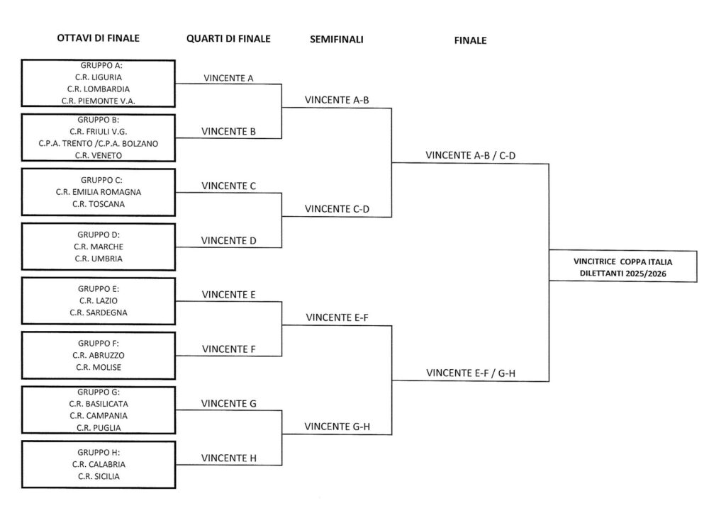 La LND (Lega Nazionale Dilettanti) subentra nell’organizzazione e divide le pretendenti in 8 gruppi geografici per iniziare a comporre il tabellone a eliminazione diretta.