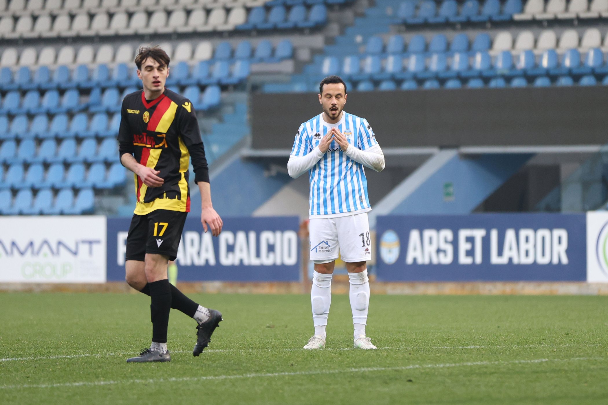 Il pareggio biancazzurro arriva al 56′ con un calcio di rigore guadagnato da Prezzabile e trasformato da Piccioni, ma la fase positiva degli spallini dura soltanto tre minuti, quando Selleri dal limite dell’area disegna una traiettoria sul primo palo battendo un Giacomel non impeccabile. Di Bendetto (più volte contestato durante la partita) prova a cambiare qualcosa, ma oltre a qualche tiro dalla distanza che si spegne in Curva Est la SPAL non crea molto altro. Per il gol del pareggio spallino bisogna mandare avanti il cronometro fino ai minuti finali, quando Prezzabile in tap-in salva i biancazzurri dalla sconfitta, ma non da una situazione sempre più compromessa in ottica primo posto.