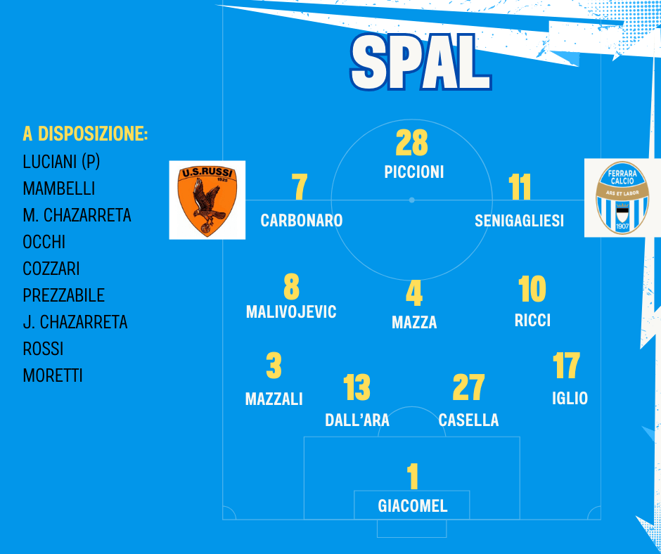 Trasferta insidiosa per la SPAL al “Bruno Bucci” di Russi: i padroni di casa vengono da quattro vittorie consecutive e puntano deliberatamente a posizionarsi in zona playoff. I biancazzurri invece vogliono altri tre punti per rimanere a ruota del Mezzolara capolista.